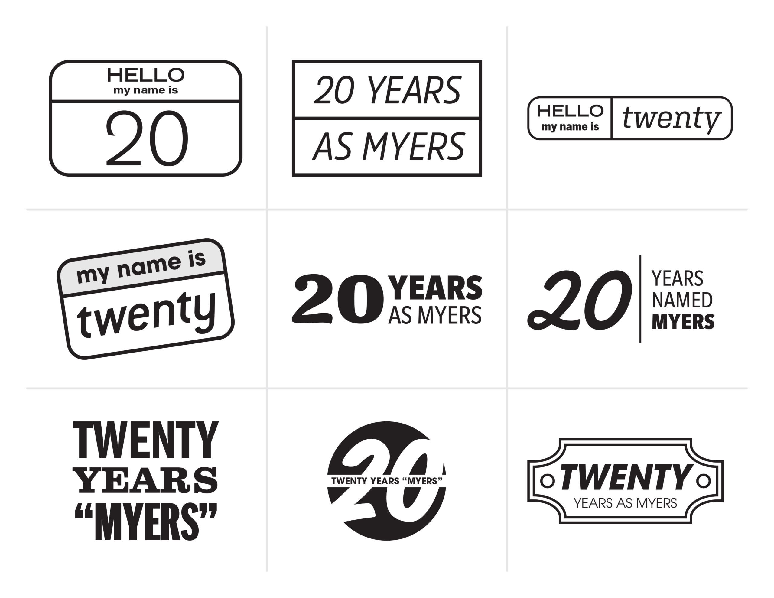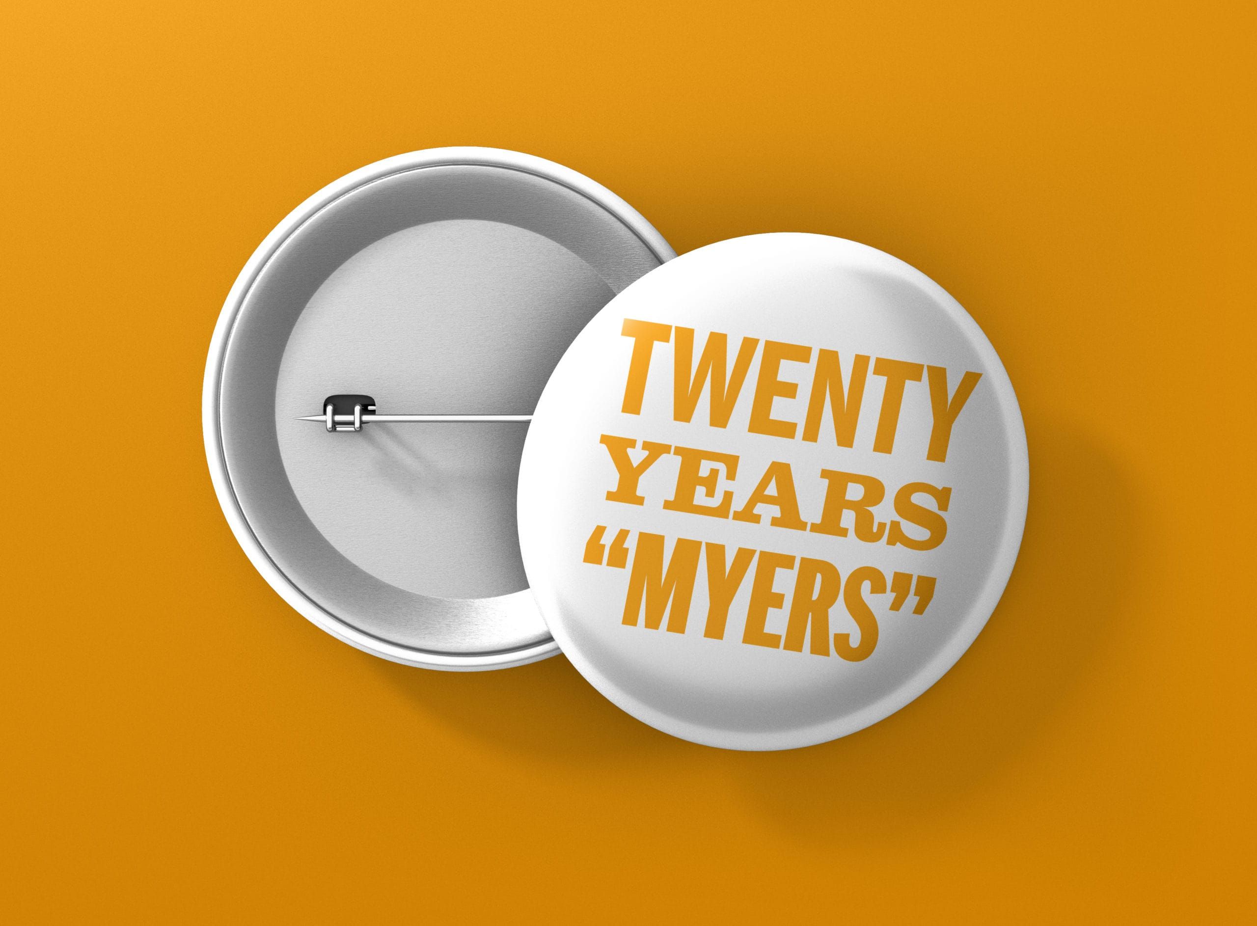 Twenty years of the Myers name. The Myers School of Art at The University of Akron was named for Mary Schiller Myers, an alumna who was well known and highly regarded throughout the art world as an advocate and patron of the arts. In 2017, as part of the in-house design studio, I was tasked with creating a logo to celebrate 20 years of the school adopting its name.