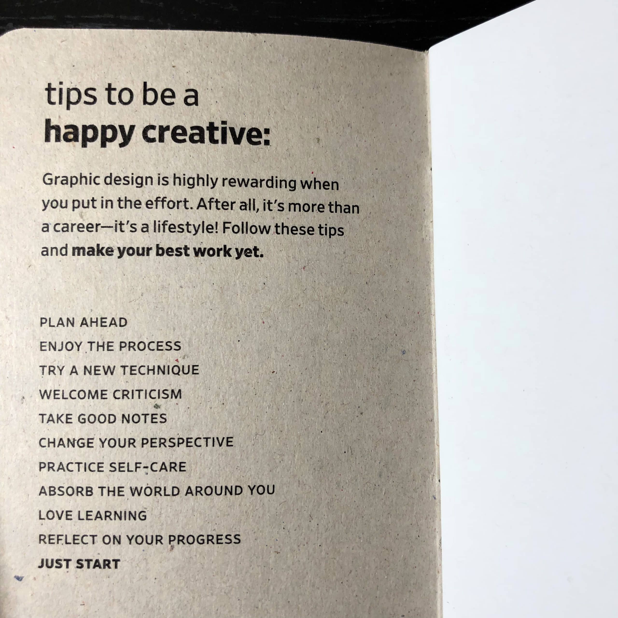Designer at heart. Custom-designed pocket notebooks for my senior BFA show. The inside cover offers encouraging tips from what I learned throughout my education, and with blank pages, you can use them to sketch, take notes, or list the things that make you happy.