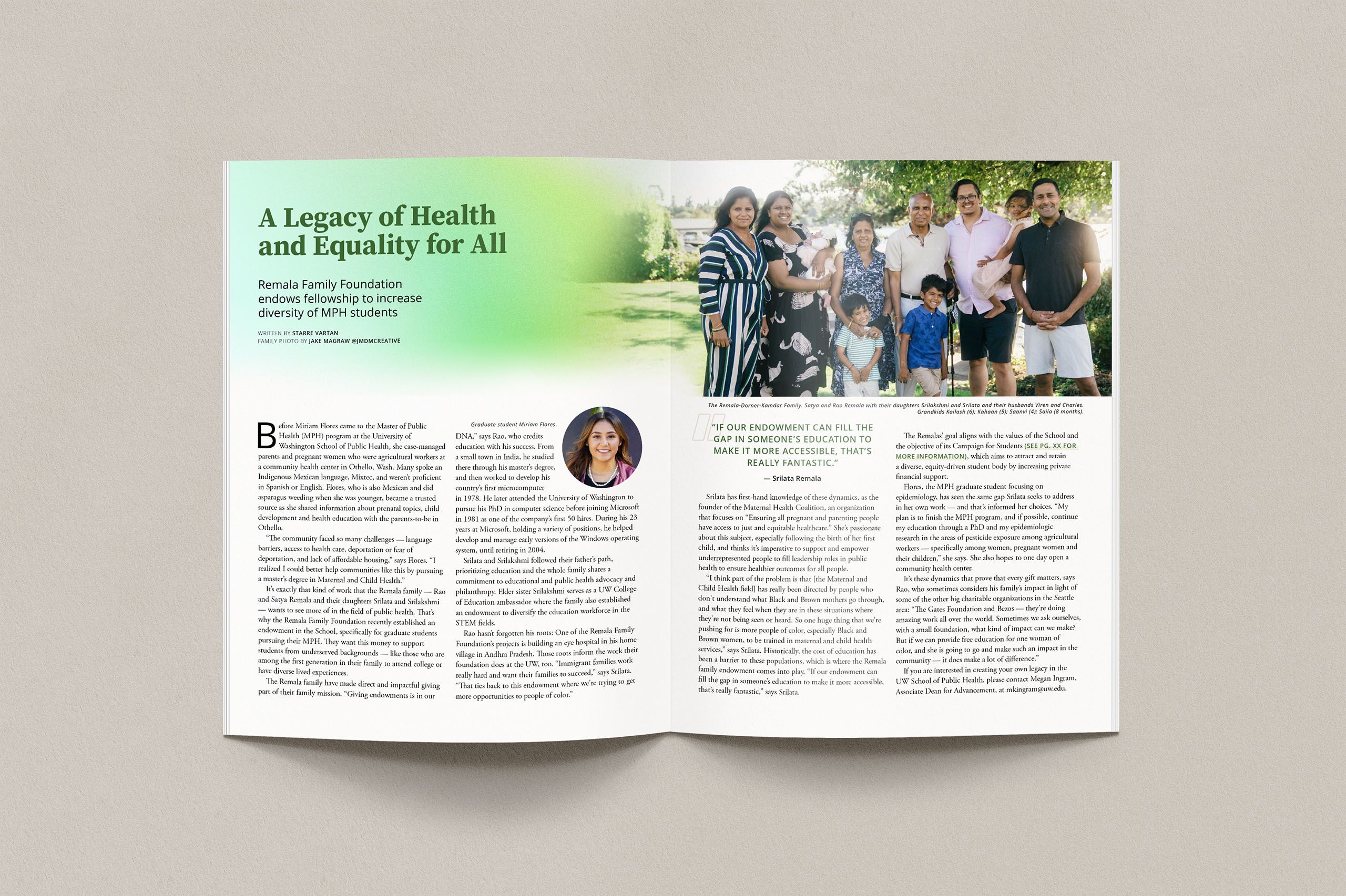 School of Public Health magazine. The UW School of Public Health’s anniversary issue celebrates the school’s 50 years of impact. I contributed print layouts, story illustrations, web design, and front-end programming for this milestone edition of the magazine. View the digital magazine